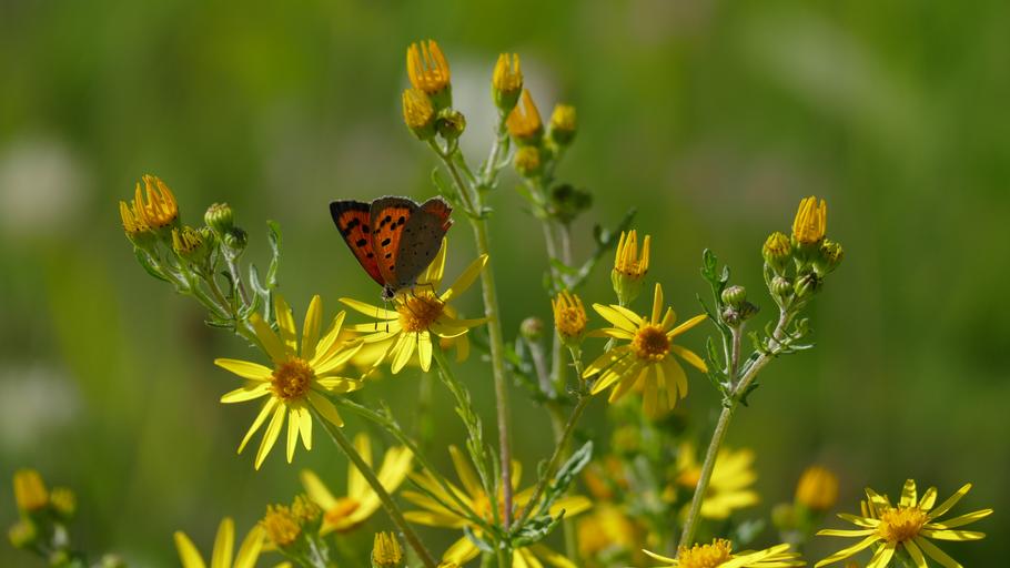 Keywords: butterfly flowers yellow flower and butterfly summer close insect nature meadow green animal