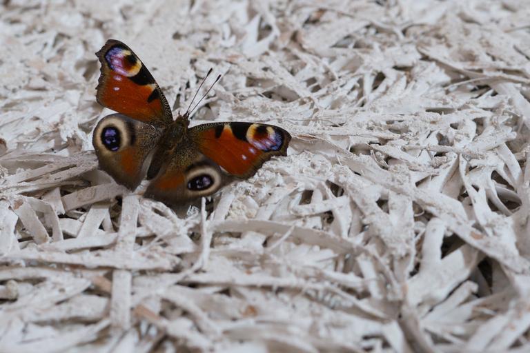 Keywords: butterfly insect animal peacock butterfly european peacock aglais io red eyespot straw insulation white