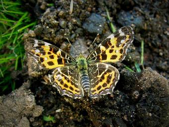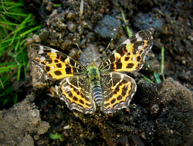 Keywords: butterfly insect bug garden nature brown yellow butterfly garden the antennæ summer lasiommata maera wing lame duck on the ground plant green