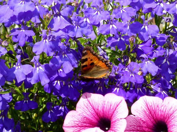 Keywords: butterfly little fox lobelia purple pink flower garden nature