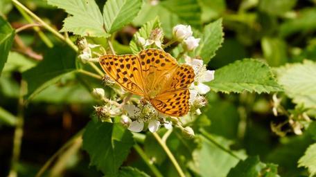 Keywords: butterfly orange silver-washed fritillary argynnis paphia female flower white summer sunshine black spots