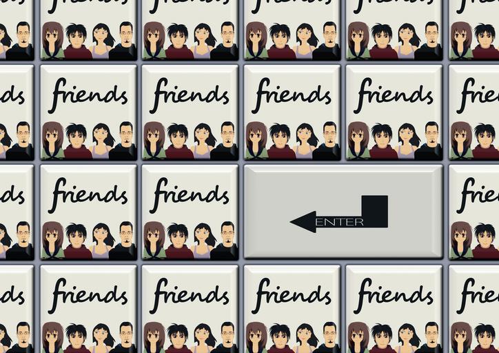 Keywords: button enter enter key square tile friends personal figures network connection with each other together facebook communication interaction community human communicate keyboard computer computer keyboard