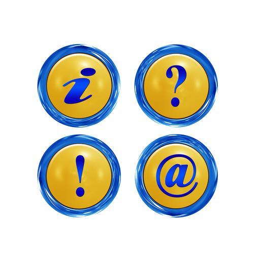 Keywords: button information question mark exclamation point characters question request response note at