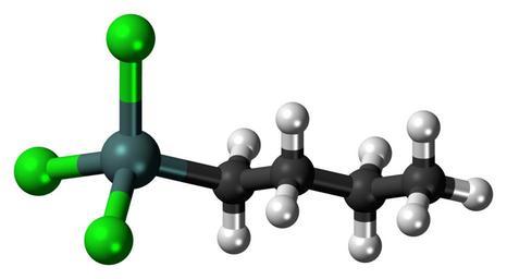 | Keywords: Butyltin trichloride 3D ball.png Ball-and-stick model of the butyltin trichloride molecule an organotin compound Colour code 505050 Carbon C black<br> F0F0F0 Hydrogen H white<br> 14F014 Chlorine Cl green<br> 5A8282 Tin Sn blue-grey<br> 2011-06-15 own DS Visualizer Jynto talk Space-filling version cc-zero chlorine compounds Butyltin compounds Images by Jynto Ball-and-stick models | ||||