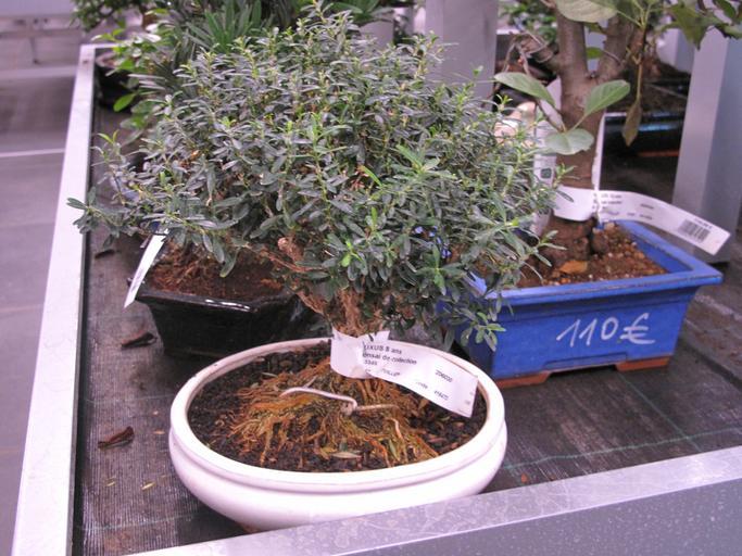 Keywords: Buxus bonsai.jpg en Buxus shaped as bonsai in a garden centre Identified by its commercial botanic label fr Buis taillé en bonsai dans une jardinerie Identifié par son étiquette botanique commerciale own Tangopaso 2012-11-10 Buxus bonsai Truffaut garden centres in France Plants identified by botanic label