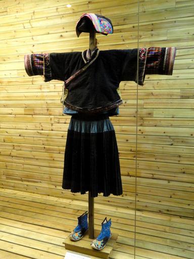 | Keywords: Buyi woman polished-cloth clothes - Yunnan Nationalities Museum - DSC04248.JPG Buyi woman polished-cloth clothes Clothing exhibited in the Yunnan Nationalities Museum Kunming Yunnan China I took this photograph 2011-08-13 02 15 04 Daderot Public domain Clothing in the Yunnan Nationalities Museum Buyei clothing |