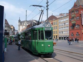 | Keywords: BVB Tram car 461 at Marktplatz, on line 15 towards Bruderholz in Basel, Switzerland.jpg BVB Tram car 461 at Marktplatz on line 15 towards Bruderholz in Basel Switzerland own 2009-05-01 12 55 53 AlfvanBeem 47 33 29 22 N 7 35 15 22 E CC-zero Swiss Standard trams in Basel SWP trams Basel tram line 15 Trams photographed by Alf van Beem Number 461 on trams | ||||