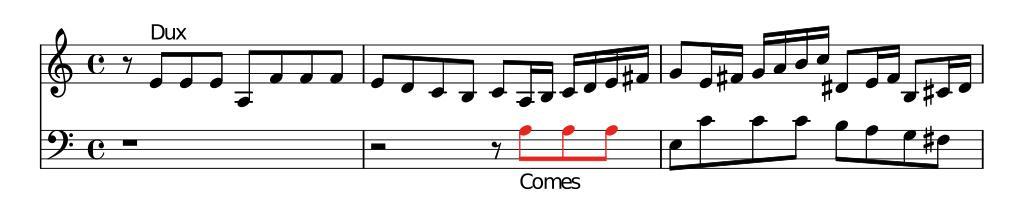 | Keywords: BWV895-Dux-Comes.svg de Dux und Comes von Fuge BWV 895 nach File BWV_895-Dux-Comes JPG Erstellt mit LilyPond Dux and Comes or leader and follower in BWV 895 after File BWV_895-Dux-Comes JPG Made with LilyPond Source Code <pre> \version 2 10 0 << Stimme 1 \clef violin \key c \major \time 4/4 r8 e' Dux e' e' a f' f' f' e' d' c' b c' a16 b c' d' e' fis' g'8 e'16 fis' g' a' b' c dis'8 e'16 fis' b8 cis'16 dis' Stimme 2 \new Staff \clef bass \key c \major \time 4/4 r1 r2 r8 \override NoteHead 'color red \override Stem 'color red \override Beam 'color red a_ Comes a a \override NoteHead 'color black \override Stem 'color black \override Beam 'color black e c' c' c' b a g fis >> </pre> 2012-05-07 own Christian Stroppel SVG Brian Ammon File BWV_895-Dux-Comes JPG cc-zero Uploaded with UploadWizard Harpsichord music by JS Bach Sheet music of Johann Sebastian Bach Fugues |