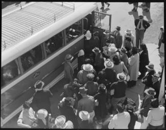 | Keywords: Byron, California. Evacuees of Japanese ancestry boarding a bus for the Turlock Assembly center, si . . . - NARA - 537892.jpg Scope and content The full caption for this photograph reads Byron California Evacuees of Japanese ancestry boarding a bus for the Turlock Assembly center sixty-five miles away Six bus-loads left on this day from this small agricultural town which included highly skilled managers farm owners tenant operators tractor drivers and farm laborers General notes 537892 Local identifier 210-G-C582 Department of the Interior War Relocation Authority 02/16/1944 - 06/30/1946 NARA-Author Lange Dorothea 1895-1965 Photographer 1372774 <br /> Still Picture Records Section Special Media Archives Services Division NWCS-S National Archives at College Park 8601 Adelphi Road College Park MD 20740-6001 1942-05-02 Record group Record Group 210 Records of the War Relocation Authority 1941 - 1989 Record group ARC 537 Central Photographic File of the War Relocation Authority compiled 1942 - 1945 Series ARC 536000 File unit File unit ARC Variant control numbers NAIL Control Number NWDNS-210-G-C582 Other versions <gallery> File Byron _California _Evacuees_of_Japanese_ancestry_boarding_a_bus_for_the_Turlock_Assembly_center _si_ _ _ _-_NARA_-_537892 tif tif File Byron _California _Evacuees_of_Japanese_ancestry_boarding_a_bus_for_the_Turlock_Assembly_center _si_ _ _ _-_NARA_-_537892 jpg jpg </gallery> NARA-cooperation PD-USGov Dorothea Lange Japanese American internment processing in Byron California |