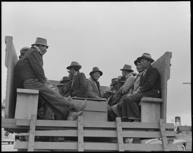Keywords: Byron, California. Field laborers of Japanese ancestry are returning to the large-scale asparagus r . . . - NARA - 537695.jpg Scope and content The full caption for this photograph reads Byron California Field laborers of Japanese ancestry are returning to the large-scale asparagus ranch after an interview at the Wartime Civil Control Administration station in regard to their evacuation to an Assembly Center which is due in three days General notes 537695 Local identifier 210-G-C362 Department of the Interior War Relocation Authority 02/16/1944 - 06/30/1946 NARA-Author Lange Dorothea 1895-1965 Photographer 1372774 <br /> Still Picture Records Section Special Media Archives Services Division NWCS-S National Archives at College Park 8601 Adelphi Road College Park MD 20740-6001 1942-04-20 Record group Record Group 210 Records of the War Relocation Authority 1941 - 1989 Record group ARC 537 Central Photographic File of the War Relocation Authority compiled 1942 - 1945 Series ARC 536000 File unit File unit ARC Variant control numbers NAIL Control Number NWDNS-210-G-C362 Other versions <gallery> File Byron _California _Field_laborers_of_Japanese_ancestry_are_returning_to_the_large-scale_asparagus_r_ _ _ _-_NARA_-_537695 tif tif File Byron _California _Field_laborers_of_Japanese_ancestry_are_returning_to_the_large-scale_asparagus_r_ _ _ _-_NARA_-_537695 jpg jpg </gallery> NARA-cooperation PD-USGov Dorothea Lange Japanese American internment processing in Byron California |