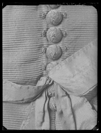 | Keywords: Byxor av svart sidenrips - Livrustkammaren - 53946.tif LSH artwork sv Tillhört Karl X Gustav 1622-1660 Byxorna är som redan framhållits mycket vida På grund av tygets stora bredd har man dockej behövt skarva dem Enbart i sidorna och fram- och baktill är sömmarna placerade Isidsömmarna är de drygt 22 cm långa ficksprunden placerade man har vikt in sömmarna något Fram är ett mycket långt sprund ca 45 cm med en 35 cm lång knäppslå Denna har 21knapphål 2 5 cm långa Endast 7 st små d 1 1 cm knappar finns kvar på motstående sida De är av samma sort som de 2 små i jackans krage På höger framstycke finns också ett litetvertikalt 12 cm långt ficksprund Byxorna är kraftigt rynkade vid den 133 cm långalinningen dock mera sparsamt framtill samt har dessutom ett djupt motveck bak ävenlinningen har försetts med ett likadant veck så att dess längd reducerats till 120 cm Linningen har såvitt man kan se blott en skarv Den har 4 långa hakar av järn Fram knäppsden med 2 knappar d 1 4 cm och 2 st 4 cm långa knapphål I linningen finns som vanligten liten linneficka urficka försedd med hål genom vilket en hake ursprungligen trätts fast den senare flyttats utanpå linningen stygnen syns ännu i fodret I sidsömmen sitter i en tät rad större knappar d 1 4 cm av samma typ som jackans frånficksprunden och ned De är 15 till antalet i vänster sida och 16 i höger På ömse sidor omknapparna drygt 1 cm utanför sidsömmen sitter små tränsar sydda av svart silke med 3knapphålsstygn Byxorna har innerfoder av vit linnelärft 26x23 tr/cm2 Även mellanfoderav svart kypertvävt ylle som ruggats upp eller valkats finns Nertill vid benen är byxornaskodda med en ca 10 cm bred remsa av tyget som sytts fast under linnefodret Denna remsanår litet ca 2 mm utanför byxkanten och ser från framsidan ut som en passpoal Knäppslånfram är på insidan fodrad med svart taft 68x34 tr/cm2 Fickornas stoffering utgörs avmoiré Nedtill vid benen garneras byxorna med 2 rader svarta sidenrosetter av ett 3 6 cmbrett band 60x34 tr/cm2 Varje rosett är knuten med 4 långa öglor och drar allt som alltca 104 cm Det ser ut som om man placerat rosetterna i 2 horisontella rader med 10 rosetteri varje och nu återstår på vänster sida 9 st av den övre raden och på höger sida bara 6st Båda de undre raderna saknas numera Nedanför linningen framtill har det ursprungligen suttit rosetter varav inte någon finns ibehåll Men av spåren att döma torde det ha funnits 6 på varje sida 4 i en övrehorisontell rad och 2 i en undre 1671 års inventarium talar märkligt nog inte alls omnågra rosetter uppe framtill Kanske har dessa redan vid detta tillfälle varitbortsprättade Byxorna är märkta N 51 nr i 1789-90 års inv original caption - 1654 1660 linen Färg vit d2 - dräkt - foder material linnelärft - silk Färg svart d1 - dräkt - yttermaterial material siden size mm 550 mitt bak size mm 640 sidsöm size mm 190 innersöm size mm 400 fickpåse sidficka size mm 1340 ben nedtill size mm 600 mitt fram size mm 450 sprund size mm 230 fickpåse size mm 220 sprund sidficka size mm 5 kantband size mm 720 total inkl linning size mm 130 sprund ficka LRK Karl X Gustav av Sverige place of origin original filename LN_E04592 55559 inventory number LRK 19024 53946 CC0 Byxor av svart sidenrips - Livrustkammaren - 53946-negative tif <gallery caption Different images of same object > File Byxor av svart sidenrips - Livrustkammaren - 36827 tif File Byxor av svart sidenrips - Livrustkammaren - 11142 tif File Byxor av svart sidenrips - Livrustkammaren - 19704 tif File Byxor av svart sidenrips - Livrustkammaren - 28266 tif File Byxor av svart sidenrips - Livrustkammaren - 45385 tif File Byxor av svart sidenrips - Livrustkammaren - 62507 tif </gallery> <gallery caption Related objects > File Kappa av svart sidenrips - Livrustkammaren - 60160 tif LRK 19025 File Svart tröja i sidenrips med foder i sidenmoiré - Livrustkammaren - 86715 tif LRK 19023 File Jacka av svart sidenrips - Livrustkammaren - 68722 tif LRK 19023 File Jacka av svart sidenrips - Livrustkammaren - 78654 tif LRK 19023 File Svart tröja i sidenrips med foder i sidenmoiré - Livrustkammaren - 86714 tif LRK 19023 </gallery> Trousers Media contributed by LSH dim-with multiple size templates Media contributed by LSH 2016-12 |