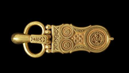 Keywords: Byzantine - Belt Buckle - Walters 57545.jpg Gold belt buckles were usually personallized with the owner's name like the small monogram of Theodore seen on this luxurious example Belt buckles were in use in the Byzantine Empire by the 5th century when the Roman toga began to be replaced by trousers as part of the cultural influence of the northern migratory peoples late 6th-7th century Late Antique gold H 1 1/8 x L 3 1/8 x D 3/8 in 2 9 x 7 9 x 0 9 cm accession number 57 545 24626 Found near Hamas Syria Fahim Kouchakji Aleppo and New York date of acquisition unknown by purchase Henry Walters Baltimore date of acquisition unknown by purchase Walters Art Museum Henry Walters Acquired by Henry Walters Early Christian and Byzantine Art Baltimore Museum of Art Baltimore 1947 The Arts of Man Dallas Museum of Art Dallas 1962 Jewelry - Ancient to Modern The Walters Art Gallery Baltimore 1979-1980 place of origin Lahore Pakistan Walters Art Museum license Byzantine and Early Russian art in the Walters Art Museum Jewellery in the Walters Art Museum Byzantine belts Media contributed by the Walters Art Museum needs category review |