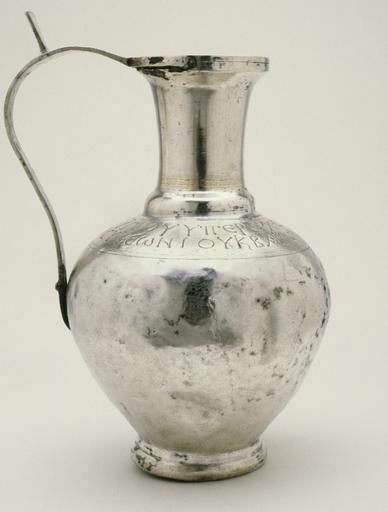 Keywords: Byzantine - Ewer - Walters 57645.jpg The celebration of the Divine Liturgy is one of the most important ceremonies in the Christian Church This ewer is part of a silver service with Walters 57 634 57 635 57 642 57 644 57 649 57 646 57 650 and 57 638 that is one of only four to survive from the first golden age of Byzantium 6th century Each of the vessels in this service performed a sacred function in the liturgical service Small ewers pitchers and bowls held water for ritual hand-washing This silver service was found in Syria in 1910 in the village of Kurin The Greek form of its name Kaper Koraon is inscribed on several pieces in the treasure including a chalice which reads treasure of the Church of St Sergios of the village of Kaper Koraon Almost all of the vessels record the names of donors who gave pieces from their private dinner services in fulfillment of a vow to gain divine blessing or in prayer for salvation ca 550 Late Antique silver with traces of gilding H at top of handle tip 10 9/16 x W 6 3/16 x D 7 7/8 in 26 9 x 15 7 x 20 cm ; Diam of mout cm 7 5 ; Diam of foot cm 8 1 accession number 57 645 10850 Excavated in Syria 1908-1910 Tawfic Abucasem Hama and Port Said ca 1913 by purchase Joseph Brummer Paris ca 1928 by purchase Henry Walters city Baltimore Walters Art Museum Henry Walters Acquired by Henry Walters 1929 Translation In two lines over the shoulder of the b + Ewer of Saint Sergius prayer of Daniel Sergius Symeonus Bacchus and prayer of Thomas from the village of Kaper Koraon Early Christian and Byzantine Art Baltimore Museum of Art Baltimore 1947 Silver Treasure from Early Byzantium The Walters Art Gallery Baltimore 1986 place of origin Greece Walters Art Museum license Byzantine silver in the Walters Art Museum Decorative and applied arts of Byzantine Empire Media contributed by the Walters Art Museum needs category review |