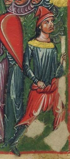 | Keywords: Byzantine Greek Alexander Manuscript 166 (cropped).JPG en Borders cropped A fourteenth-century miniature Greek manuscript depicting scenes from the life of Alexander the Great Late Byzantine-era Greek working class man from Beroea Greece is depicted holding a scroll and wearing a distinctive red cap with light bracca βράκκα trousers tucked into knee-high boots The entire scene is depicted entirely in Byzantine fashion of the late Byzantine period 1204-1453 Alexander Romance in S Giorgio dei Greci in Venice image http //194 177 217 107/gr/showpic asp picpath 9999_min_01_141r curtable miniatures currecord 166 vorder 1 vmode miniat Miniature of the Alexander Romance a fourteenth-century book<br/> Website http //www istitutoellenico org/english/pubblicazioni/index5 html Hellenic Institute of Byzantine and Post-Byzantine Studies in Venice<br/> anonymous 1204-1453 <gallery>File Byzantine_Greek_Alexander_Manuscript_166 JPG</gallery> PD-old-100 Byzantine dress Vraka |