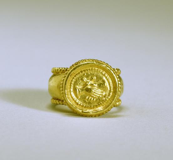 | Keywords: Byzantine - Marriage Ring - Walters 571715 - Top.jpg The hoop and circular bezel of this gold ring are edged with beads The motif of the clasped hands signifying love betrothal and marriage was first introduced in the Roman period and remained a popular symbol until the 19th century These rings are also called fede rings named after the Italian term for good faith and belief century 6 Late Antique gold cm 1 6 2 2 2 4 accession number 57 1715 5973 Mrs Sadie A May Baltimore by purchase Walters Art Museum Gift of Mrs Saidie A May 1942 Objects of Adornment Five Thousand Years of Jewelry from the Walters Art Gallery Baltimore Cooper-Hewitt National Design Museum New York; Chrysler Museum of Art Norfolk; Carnegie Museum of Art Pittsburgh; San Antonio Museum of Art San Antonio; Philbrook Museum of Art Tulsa; Honolulu Academy of Arts Honolulu; New Orleans Museum of Art New Orleans; Milwaukee Art Museum Milwaukee; Minneapolis Institute of Arts Minneapolis; Toledo Museum of Art Toledo; The John and Mable Ringling Museum of Art Sarasota 1984-1987 Jewelry from the Walters Art Museum and the Zucker Family Collection The Walters Art Gallery Baltimore 1987 Bedazzled 5 000 Years of Jewelry from the Walters Art Museum Frist Center for the Visual Arts Nashville; The John and Mable Ringling Museum of Art Sarasota; The Walters Art Museum Baltimore 2006-2009 Bedazzled 5 000 Years of Jewelry El Paso Museum of Art El Paso 2010 Early Christian and Byzantine Art Baltimore Museum of Art Baltimore 1947 Jewelry - Ancient to Modern The Walters Art Gallery Baltimore 1979-1980 place of origin Greece Walters Art Museum license Byzantine and Early Russian art in the Walters Art Museum Jewellery in the Walters Art Museum Byzantine rings Media contributed by the Walters Art Museum needs category review Wedding rings Gold rings |