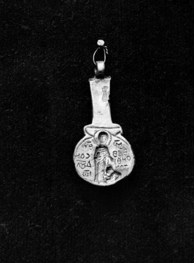 | Keywords: Byzantine - Pendant Seal with Virgin and Supplicant - Walters 571008.jpg The small shell-shaped seal depicts the standing Virgin whose hand is extended over a kneeling supplicant The person's name is revealed by the accompanying inscription century 12 Medieval silver with gilt cm 2 8 1 3 0 4 accession number 57 1008 33662 Joseph Brummer Paris and New York by purchase Henry Walters city Baltimore Walters Art Museum Henry Walters Acquired by Henry Walters 1925 Translation Mother of God help your servant John Early Christian and Byzantine Art Baltimore Museum of Art Baltimore 1947 Jewelry - Ancient to Modern The Walters Art Gallery Baltimore 1979-1980 place of origin Byzantine Empire Walters Art Museum license Byzantine and Early Russian art in the Walters Art Museum Jewellery in the Walters Art Museum Seals of the Byzantine Empire Media contributed by the Walters Art Museum needs category review |