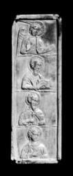 Keywords: Byzantine - Triptych Wing with an Angel and Saints - Walters 7167.jpg This panel once formed together with its pair 71 159 the side wings of a triptych icon Each wing is divided into four registers showing inward-facing figures that originally drew the viewer's attention to the now missing image in the center The overall arrangement follows a hierarchical order with a pair of angels in the top register followed by the apostles Paul and Peter and by four martyrs holding crosses century 10 11 Medieval ivory cm 16 4 5 5 accession number 71 67 2291 Count Gregoire Stroganoff Grigorii Sergeevich Stroganov Rome before 1900 by purchase Henry Walters city Baltimore Walters Art Museum Henry Walters Acquired by Henry Walters 1926 Early Christian and Byzantine Art Baltimore Museum of Art Baltimore 1947 place of origin Byzantine Empire Walters Art Museum license Byzantine ivory in the Walters Art Museum Decorative and applied arts of Byzantine Empire Media contributed by the Walters Art Museum needs category review |