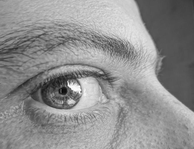 Keywords: œil eyes view profile black and white gray level picture visual grey white iris