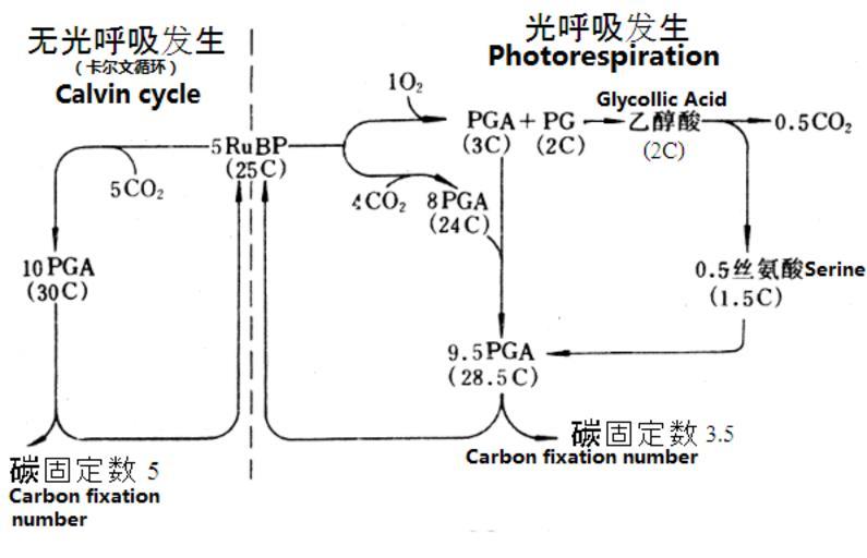 Keywords: C fixed by Phsyn and Phres.PNG biology c-fix account compare between Photosynthesis and Photorespiration 光合 用中的物质循环示意图 Own 2006-11-13 Original dgg32<br>Internationalization Jack No1 Biochemistry Plant physiology Photorespiration