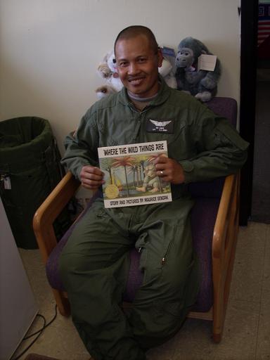 Keywords: CAB Soldiers, Families unite through reading DVIDS108532.jpg en Capt Mohamad Umar battalion flight physicians assistant Headquarters and Headquarters Company 3rd Battalion 4th Aviation Regiment Combat Avn Brigade 4th Infantry Division Multi-National Division - Baghdad from Phnom Penh Cambodia shows off the book he read to his three children Where the Wild Things Are on Camp Taji Aug 12 2008 2008-08-12 https //www dvidshub net/image/108532 108532 2008-08-14 09 17 TAJI IQ PD-USGov Camp Taji Images from DoD uploaded by Fæ |