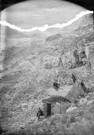 | Keywords: monochrome blackandwhite outdoor black and white Fonds Trutat - Photographie ancienne Cote : TRU B 188 Localisation : Fonds ancien (S 30) Original non communicable Titre : Cabane des guides à Crabioules, [avec] Azam et Gourdon, Luchon (environs], septembre 1881 Auteur : Trutat, Eugène Rôle de l’auteur : Photographe Lieu de création : Bagnères-de-Luchon (Haute-Garonne ; canton) Date de création : 1881 Mesures : : 20 x 15 cm Observations : Notes manuscrites Trutat : "Obj[ectif] hémisph[érique] rapide ; papier Morgan ; B 130". - Négatif retouché à la peinture noire. Mot(s)-clé(s) : -- Montagne -- Versant rocheux -- Abri troglodytique -- Cabane -- Pierre -- Herbe -- Rocher -- Homme -- Costume masculin -- Chapeau -- Randonnée pédestre -- Cirque (montagne) -- Gourdon, Maurice -- Azam -- Bagnères-de-Luchon (Haute-Garonne ; canton) -- Crabioules (France ; cirque) -- Lys, Vallée du (France) -- Luchonnais, Massif du (France) -- 19e siècle, 4e quart Médium : Photographies -- Négatifs sur papier -- Noir et blanc -- Morgan -- Paysages -- Portraits de groupe Voir : TRU B 185 Cabane de Crabioules, [avec] Azam et Gourdon, TRU B 186 Cabane de Crabioules, Luchon (environs), septembre TRU B 187 Cabane de Crabioules, Luchon (environs), septembre TRU B 189 Groupe à la cabane de Crabioules, [avec] Gourdon TRU B 190 Groupe à la cabane de Crabioules, [avec] Gourdon numerique.bibliotheque.toulouse.fr/cgi-bin/library?c=phot... Bibliothèque de Toulouse. Domaine public Fonds Trutat - Photographie ancienne Cote : TRU B 188 Localisation : Fonds ancien (S 30) Original non communicable Titre : Cabane des guides à Crabioules, [avec] Azam et Gourdon, Luchon (environs], septembre 1881 Auteur : Trutat, Eugène Rôle de l’auteur : Photographe Lieu de création : Bagnères-de-Luchon (Haute-Garonne ; canton) Date de création : 1881 Mesures : : 20 x 15 cm Observations : Notes manuscrites Trutat : "Obj[ectif] hémisph[érique] rapide ; papier Morgan ; B 130". - Négatif retouché à la peinture noire. Mot(s)-clé(s) : -- Montagne -- Versant rocheux -- Abri troglodytique -- Cabane -- Pierre -- Herbe -- Rocher -- Homme -- Costume masculin -- Chapeau -- Randonnée pédestre -- Cirque (montagne) -- Gourdon, Maurice -- Azam -- Bagnères-de-Luchon (Haute-Garonne ; canton) -- Crabioules (France ; cirque) -- Lys, Vallée du (France) -- Luchonnais, Massif du (France) -- 19e siècle, 4e quart Médium : Photographies -- Négatifs sur papier -- Noir et blanc -- Morgan -- Paysages -- Portraits de groupe Voir : TRU B 185 Cabane de Crabioules, [avec] Azam et Gourdon, TRU B 186 Cabane de Crabioules, Luchon (environs), septembre TRU B 187 Cabane de Crabioules, Luchon (environs), septembre TRU B 189 Groupe à la cabane de Crabioules, [avec] Gourdon TRU B 190 Groupe à la cabane de Crabioules, [avec] Gourdon numerique.bibliotheque.toulouse.fr/cgi-bin/library?c=phot... Bibliothèque de Toulouse. Domaine public |