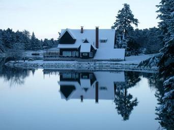 Keywords: cabin snow winter lake forest house snowy cottage cold turkey