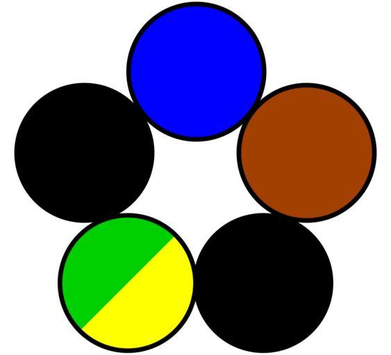 | Keywords: Cable blue brown black green-yellow black.svg en Color scheme of a cable blue brown black green-yellow black de Farbschema eines 5-adrigen Kabels blau braun schwarz grün-gelb schwarz own RokerHRO SVG electrical wiring and cables Power cables |