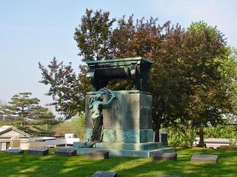 | Keywords: Cable Monument Chippiannock.JPG en Cable monument by Paul de Vigne in Chippiannock Cemetery Rock Island Rock Island County Illinois Cemetery listed on the NRHP since May 6 1994 2901 Twelfth St Rock Island Architect Almerin Hotchkiss patterned his design on the Rural Cemetery style of Mt Auburn Cemetery in Massachusetts It also contain a monument by Alexander Stirling Calder 2011-05-10 own Smallbones cc-zero Uploaded with UploadWizard Chippiannock Cemetery Paul De Vigne Bronze grave sculptures in the United States Graves in Illinois |