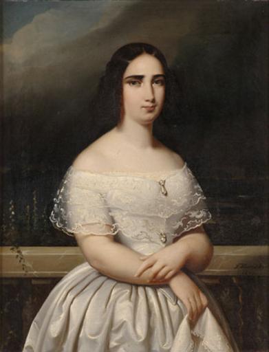 | Keywords: Cäcilie von Schweden Großherzogin von Oldenburg by Theodor Hamacher.jpg Artwork Theodor Hamacher 1825 Düsseldorf - 1865 Breslau Cäcilie Großherzogin von Oldenburg geb Prinzessin von Schweden 1847 Oil on canvas cm 50 38 unknown http //www duesseldorfer-auktionshaus planetactive com/ other versions PD-old-100 DEFAULTSORT 1847; Cecilia of Sweden Images from Düsseldorfer Auktionshaus Theodor Hamacher 19th-century portrait paintings location missing Cecilia of Sweden Grand Duchess of Oldenburg 1840s dresses 1847 oil on canvas paintings Portrait 1847 portrait paintings from Germany 19th-century oil portraits of standing women at half length 19th-century oil portraits of standing women at three-quarter length Balustrades in portrait paintings Brooches in art Female hair fashion in art Females with white dresses in art Lace in art |