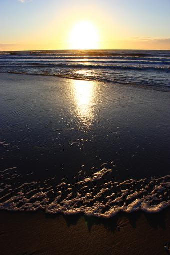 Keywords: cadzand-bad netherlands holland north sea beach summer july sky sun water landscape nature blue spacious distant sand rest wave atmospheric sunlight coast evening holiday sunset abendstimmung mirroring back light idyll mood romantic tracks in the sand