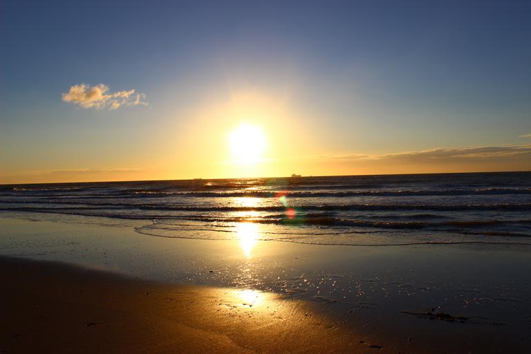 Keywords: cadzand-bad netherlands holland north sea beach summer july sky sun water landscape nature blue spacious distant sand rest wave atmospheric sunlight coast evening holiday sunset abendstimmung mirroring back light idyll mood romantic tracks in the sand