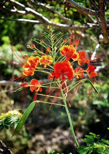 | Keywords: dsc01813 fleur flower ile de la réunion iledelaréunion la reunion island lareunionisland jaune petit flamboyant petitflamboyant st gilles les bains stgilleslesbains jardin d'eden jardindeden 2013 sony nex-3 sonynex3 sel1855 974 foliage plant outdoor tree photo border "Caesalpinia pulcherrima, appelé flamboyant, petit flambloyant, fleur de paon, orgueil de Chine ou bien, en Guyane, macata ou baraguette est un arbuste persistant de 3 à 5 m de haut. Il appartient à la famille des Caesalpiniaceae selon la classification classique, ou des Fabaceae, sous-famille des Caesalpinioideae, selon la classification phylogénétique.  Il est originaire des régions tropicales chaudes d'Amérique. C'est l'emblème de la Barbade (Pride of Barbados)."  -------------------------------------------------------------------------------------------------------------------  "Caesalpinia pulcherrima is a species of flowering plant in the pea family, Fabaceae, that is native to the tropics and subtropics of the Americas. It could be native to the West Indies,[2] but its exact origin is unknown due to widespread cultivation.[1] Common names for this species include Poinciana, Peacock Flower, Red Bird of Paradise, Mexican Bird of Paradise, Dwarf Poinciana, Pride of Barbados, and flamboyan-de-jardin" "It is a shrub growing to 3 m tall. The leaves are bipinnate, 20–40 cm long, bearing 3-10 pairs of pinnae, each with 6-10 pairs of leaflets 15–25 mm long and 10–15 mm broad. The flowers are borne in racemes up to 20 cm long, each flower with five yellow, orange or red petals. The fruit is a pod 6–12 cm long."  Souce: Wikipedia                   "Caesalpinia pulcherrima, appelé flamboyant, petit flambloyant, fleur de paon, orgueil de Chine ou bien, en Guyane, macata ou baraguette est un arbuste persistant de 3 à 5 m de haut. Il appartient à la famille des Caesalpiniaceae selon la classification classique, ou des Fabaceae, sous-famille des Caesalpinioideae, selon la classification phylogénétique.  Il est originaire des régions tropicales chaudes d'Amérique. C'est l'emblème de la Barbade (Pride of Barbados)."  -------------------------------------------------------------------------------------------------------------------  "Caesalpinia pulcherrima is a species of flowering plant in the pea family, Fabaceae, that is native to the tropics and subtropics of the Americas. It could be native to the West Indies,[2] but its exact origin is unknown due to widespread cultivation.[1] Common names for this species include Poinciana, Peacock Flower, Red Bird of Paradise, Mexican Bird of Paradise, Dwarf Poinciana, Pride of Barbados, and flamboyan-de-jardin" "It is a shrub growing to 3 m tall. The leaves are bipinnate, 20–40 cm long, bearing 3-10 pairs of pinnae, each with 6-10 pairs of leaflets 15–25 mm long and 10–15 mm broad. The flowers are borne in racemes up to 20 cm long, each flower with five yellow, orange or red petals. The fruit is a pod 6–12 cm long."  Souce: Wikipedia |