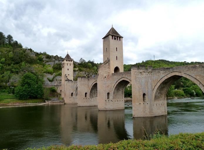 Keywords: cahors france bridge sky clouds architecture landmark river water reflections forest trees woods nature outside scenic