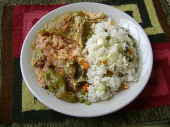 Keywords: Caigua rellena con arroz blanco.JPG es Caigua rellena con arroz blanco Caiguas farcis accompagnés de riz blanc own Dtarazona 2008-11 Stews of Peru Cyclanthera pedata