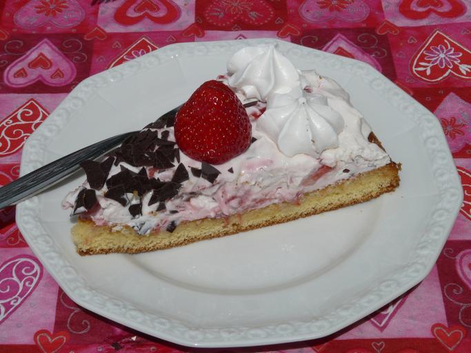 Keywords: cake piece of cake served plate eat strawberry pie strawberries strawberry cake cream sweet delicious festival celebration bake pastries pastry shop birthday meringue spanish wind