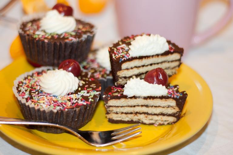 Keywords: cake tart pastries small sweet dessert bake delicious eat bakery desserts cream birthday cake muffin chocolate coffee piece of cake piece of pie coffee party cherry chocolate cake plate floral