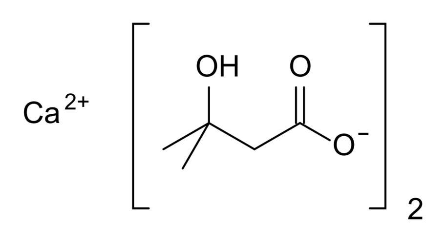 Keywords: Calcium hydroxymethylbutyrate skeletal.svg calcium beta-hydroxy-beta-methylbutyrate own Anypodetos 2010-04-04 BKchem 001 -check Calcium salts of organic compounds Carboxylate ions Tertiary alcohols