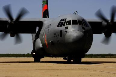 | Keywords: California Air National Guard fire-fighting C-130J Hercules.jpg en A C-130J Hercules from the 146th Airlift Wing California Air National Guard taxis into the pits during fire fighting operations at Dyess Air Force Base Texas April 28 2011 The C-130 is equipped with the Modular Airborne Firefighting System which is capable of dispensing 3 000 gallons of water or fire retardant in under five seconds 2011-04-28 http //www flickr com/photos/usairforce/5687614815/in/photostream/ Staff Sgt Eric Harris PD-USGov Uploaded with UploadWizard C-130J Hercules United States Air Force Aerial firefighting in the United States Modular Airborne FireFighting System Aerial firefighting in Texas 146th Airlift Wing California Air National Guard |