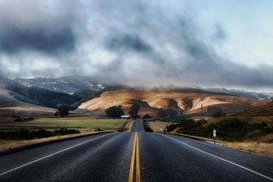 Keywords: california road highway mountains landscape scenic rural hills trees brush roadside sky clouds nature outside outdoor hdr