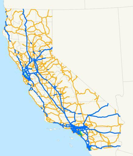 Keywords: California state highways.svg This is a map of the entire state highway system in California Email me if you would like a copy of the GIS data I created for the highways 2008-02-09 own assumed NE2 Maps of California's state highway system
