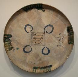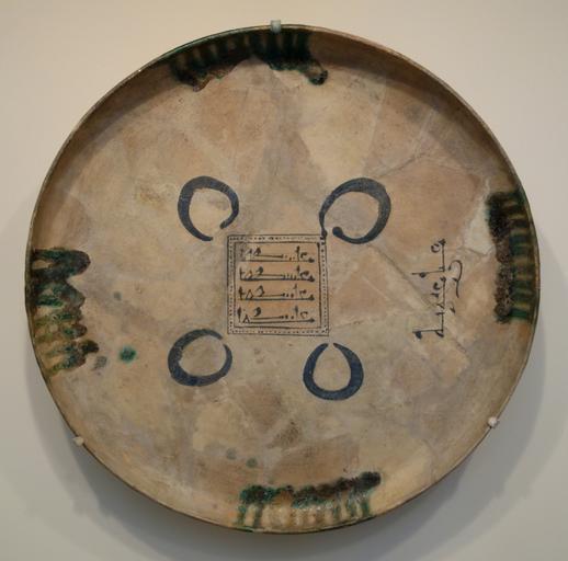 | Keywords: Calligraphic plate, Iraq, Abbasid period, 10th century AD, earthenware with black and green painting over opaque white glaze - Cincinnati Art Museum - DSC04168.JPG en Exhibit in the Cincinnati Art Museum Cincinnati Ohio USA This artwork is in the public domain because the artist died more than 70 years ago Photography was permitted in the museum without restriction 2013-05-14 11 38 09 own Daderot cc-zero Abbasid pottery in the Cincinnati Art Museum Uploaded with UploadWizard | ||||