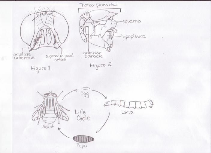 Keywords: Calliphora latifrons.jpg en Frontal face lateral throax and lifecycle picture representation own Pyrothansia 03/22/09 own work Arthropoda drawings
