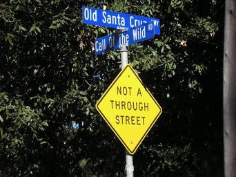 | Keywords: CallOfTheWild.JPG en Call Of The Wild Road where it meets Old Santa Cruz Highway own Mrwrite 2009-04-12 Public domain No permission needed Junction of Old Santa Cruz Hwy and Call Of The Wild Rd Intersections in California Street signs in California Dead end signs |