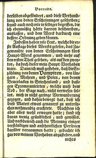 Keywords: Calmet – Gelehrte Verhandlung der Materi, Von Erscheinungen der Geistern, Und denen Vampiren in Ungarn, Mahren etc – Teil I – p 012.jpg p_011 p_013