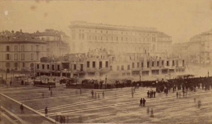 Keywords: Calzolari, Icilio (1833-1906) - Demolizione del Rebechino in piazza Duomo a Milano (1875).jpg Icilio Calzolari 1833-1906 Demolizione del Rebechino per ampliare la Piazza Duomo a Milano 1875 Icilio Calzolari 1833-1906 Demolition of a building the so-called Rebechino to widen Piazza Duomo square in Milan Italy in the year 1875 own scan 1875 Icilio Calzolari 1833-1906 PD-old Historical images of Milan by Icilio Calzolari Piazza Duomo Historical images of Piazza Duomo Milan 1875 1875 Destroyed buildings in Milan Rebechino |