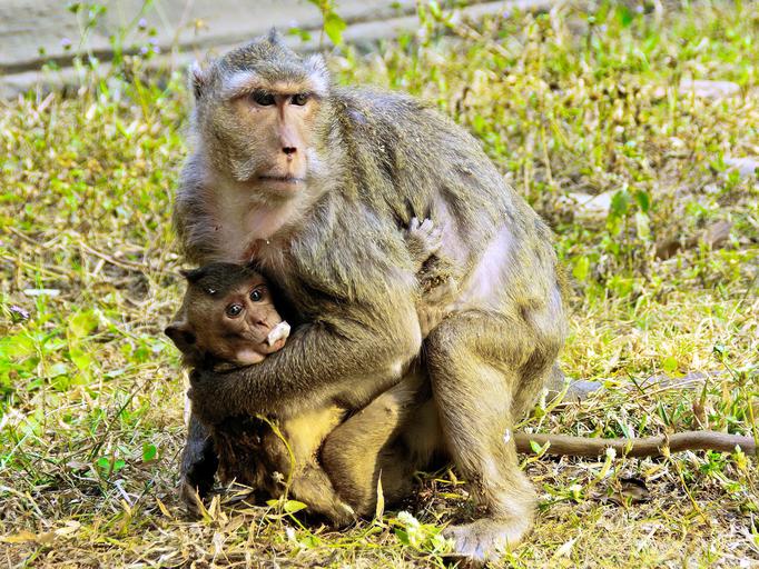 Keywords: cambodia angkor monkey family maternity protection tenderness
