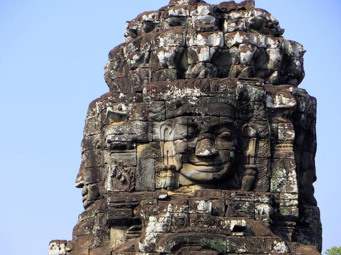 Keywords: cambodia angkor religion temple bayon face smile statue ruins