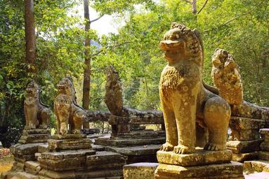 Keywords: cambodia angkor temple bantaey srei ruin temple women archaeology religion statues guards