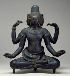 | Keywords: Cambodian - The Hindu God Brahma - Walters 542734.jpg The last king to build great monuments at the city of Angkor Jayavarman VII was a Buddhist During his reign sculptors created images that seem more personable less remote Hindu gods such as Brahma the creator had a place in the religious thought of the time and after the king's death there was a Hindu resurgence late 12th-early 13th century Bàyon bronze cm 29 5 with tang cm 31 5 accession number 54 2734 27940 Brahmanical Temple Bot Phram Bangkok Alexander B Griswold Monkton July 1949 presented to the Breezewood Foundation December 1960 inv no 490 originally no 863 Walters Art Museum Henry Walters Bequest of A B Griswold 1992 none Unearthly Elegance Buddhist Art from the Griswold Collection The Walters Art Gallery Baltimore 1995 place of origin Angkor Cambodia Walters Art Museum license Southeast Asian art in the Walters Art Museum Sculptures from Cambodia Media contributed by the Walters Art Museum needs category review Brahma in sculpture |