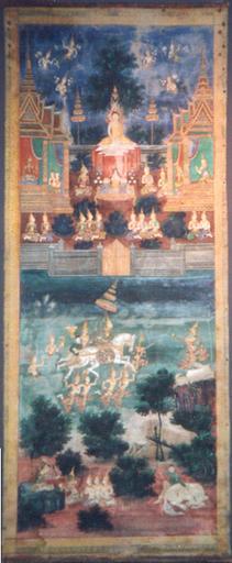 | Keywords: Cambodian - Scenes from the Life of Buddha - Walters 20101214.jpg This painting shows three episodes The Buddha-to-be in Tusita Heaven Prince Siddhattha Leaves the Palace and Prince Siddhattha Cuts His Hair ca 1870 pigments cloth cm 180 70 accession number 2010 12 14 81918 Sale Christie's Amsterdam May 10 2000 lot 444 as early 19th century Collection of James E Bogle Philadelphia Pennsylvania May 10 2000 by purchase Walters Art Museum Gift of Mr James E Bogle 2010 Exhibition of Thai Paintings from James Bogle's Collection Lycoming College Gallery Williamsport 1981-2002 place of origin Cambodia Walters Art Museum license 2D Southeast Asian art in the Walters Art Museum Art from Cambodia Media contributed by the Walters Art Museum needs category review |